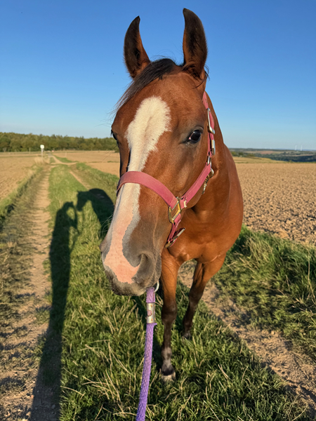 Sehr liebe und menschenbezogene Stute sucht neues 5-Sterne Zuhause. Sie wurde schonend angeritten im Bereich Reining und befindet sich in professionellem Beritt bei Verena Klein.