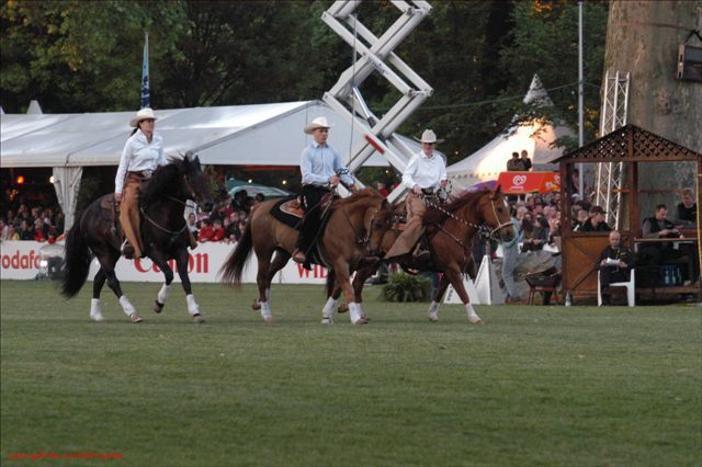 Mit dabei: Ute Holm mit zehn weiteren Reiterinnen, die dem Publikum der "Wiesbadener Pferdenacht“ das Westernreiten näher bringen werden. Trail, Pleasure, Reining und People Cutting werden bei der offiziellen Eröffnungsgala des 71. Internationalen Wiesbadener Pfingstturniers am Freitagabend den über 15.000 Zuschauer präsentiert werden.