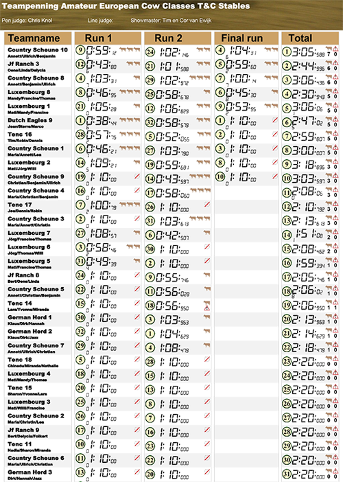 Vom 30. Juni bis 3. juli fanden im niederländischen Brunssum die Europameisterschaften 2016 in Team Penning, Cattle Penning und Ranch sorting statt, die Finalisten im Ranch Sorting sind zudem automatisch für Lyon qualifiziert.